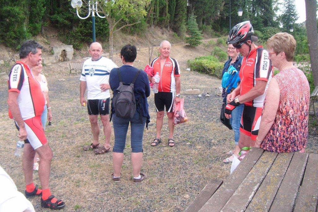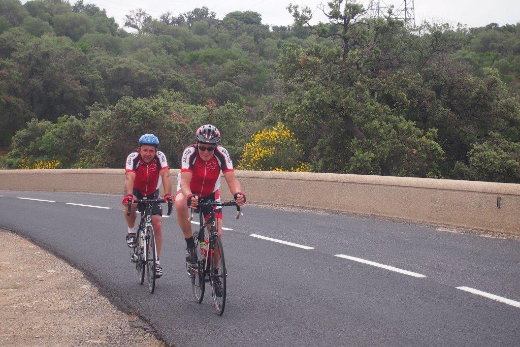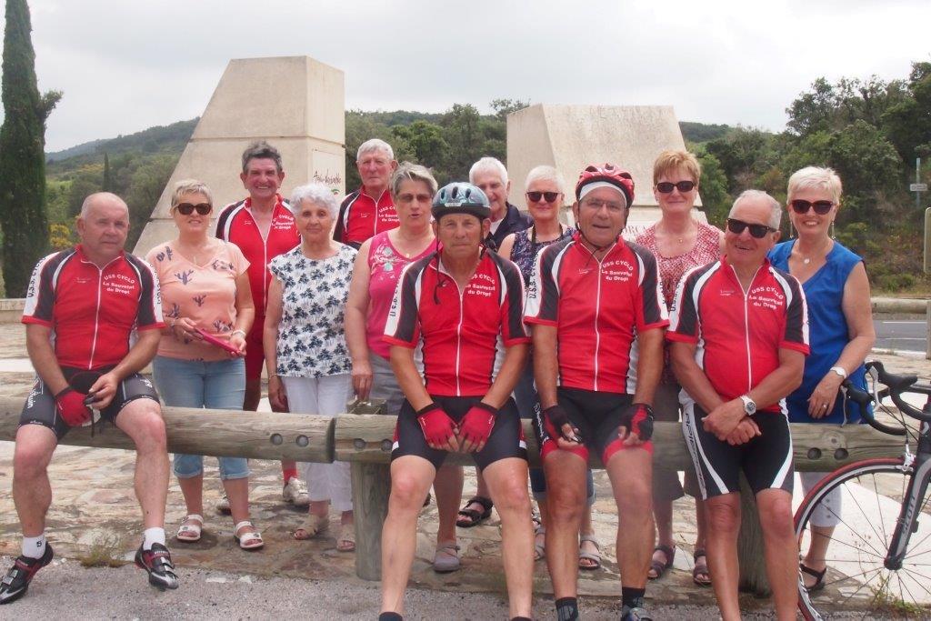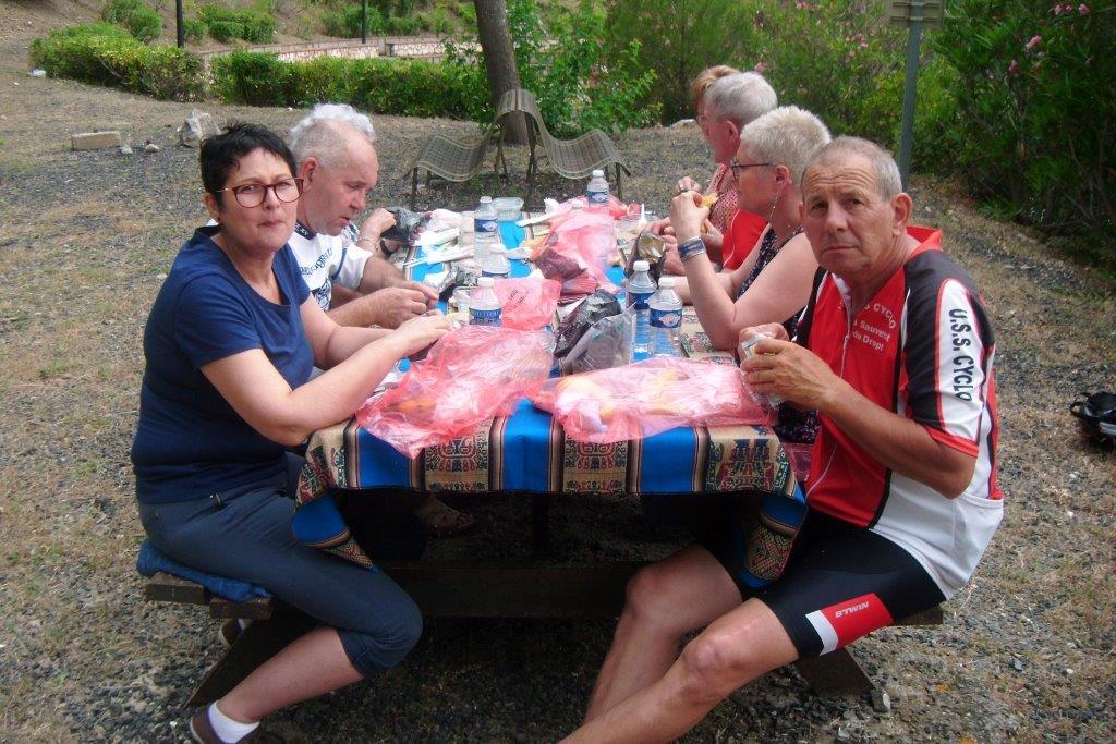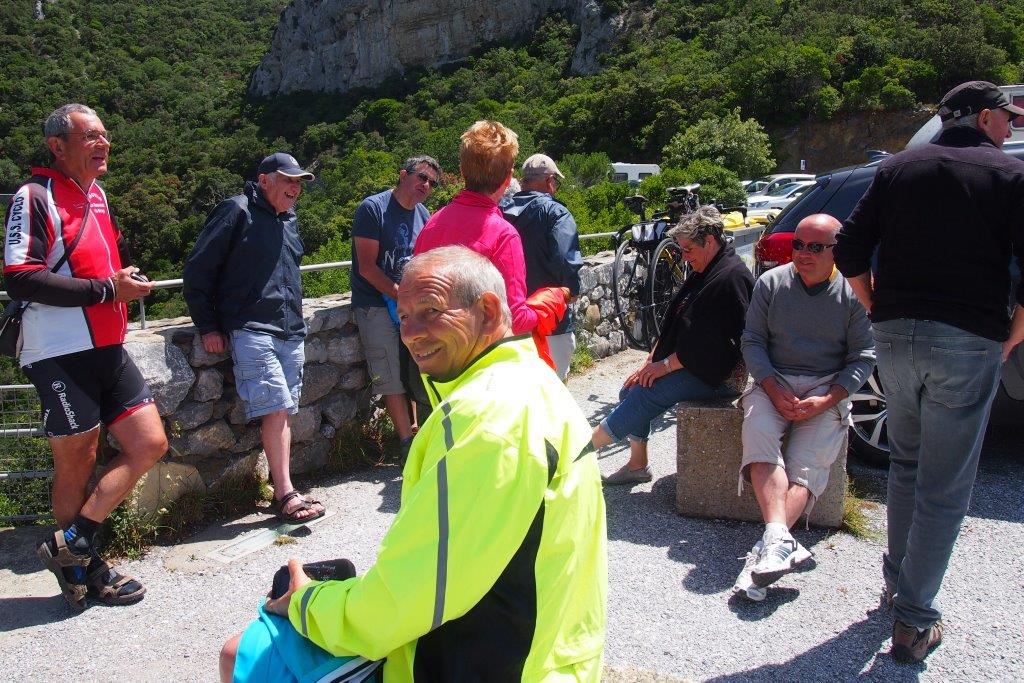 Samedi, journée vélo, objectif 110 kms. Afin de préparer le challenge dans les meilleures dispositions Régine exerce ses talents de masseuse, et après la photo du départ, nous voici partis pour escalader le col de la Bataille, là où nos compagnes nous ont rejoint. Nous prenons le temps d’admirer le magnifique panorama autour de nous dans cet arrière pays méditerranéen.