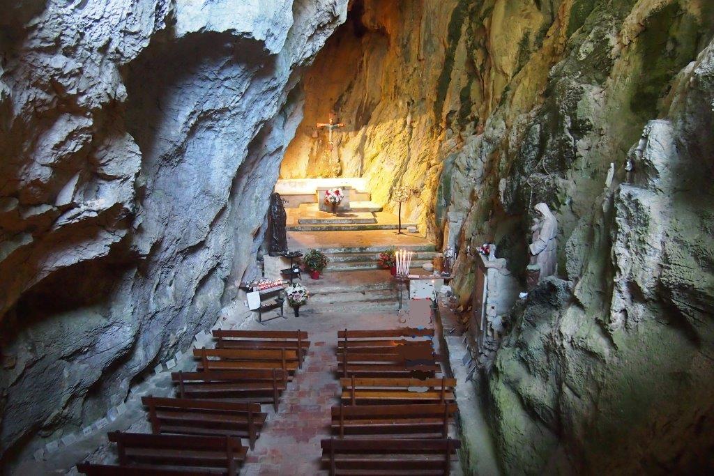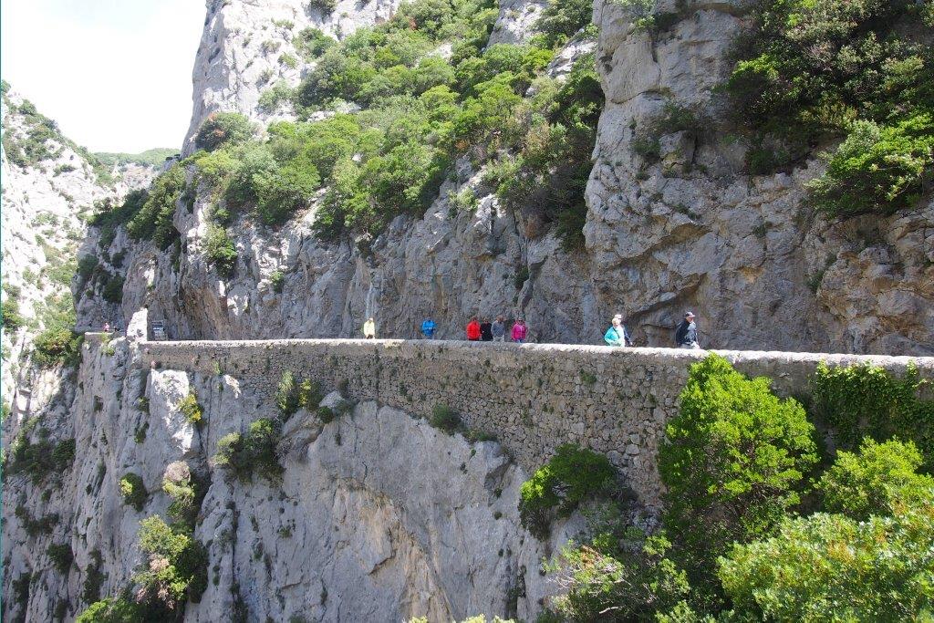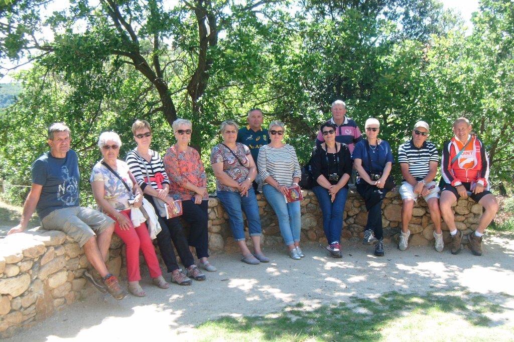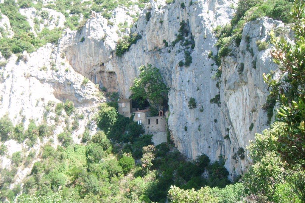 Un sentier aménagé nous conduit jusqu’à une cavité naturelle dans la falaise transformée en chapelle par les moines franciscains, jouxtant l’Ermitage de Saint Antoine De Galamus. De retour au parking, chacun relate son admiration pour cette réalisation atypique.