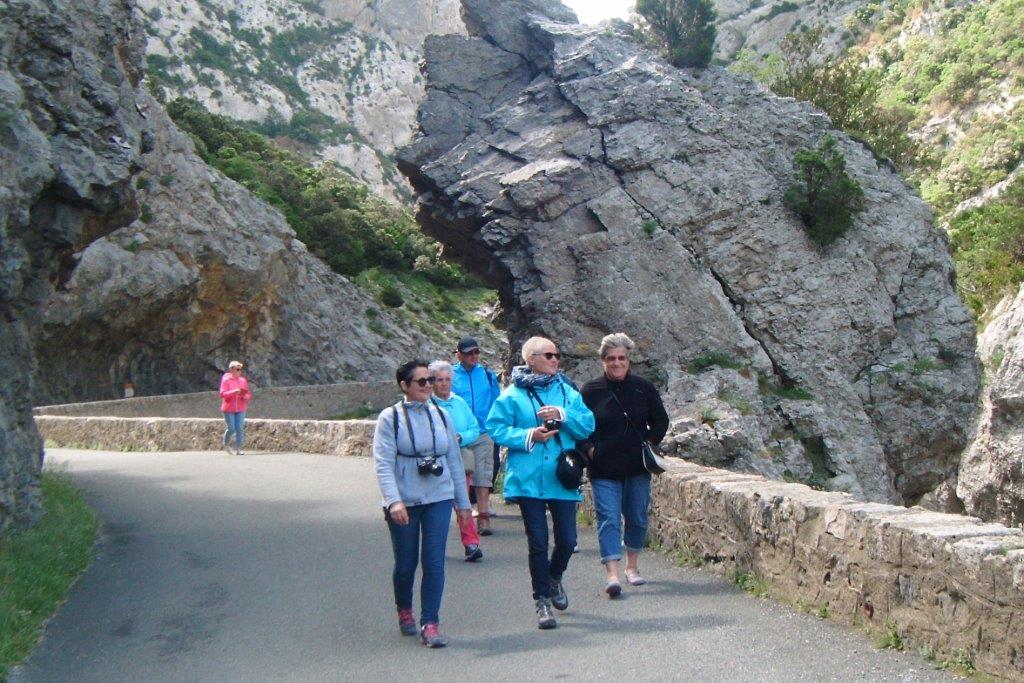 Donc, départ en voitures pour visiter les Gorges De Galamus, endroit magique, situé entre les départements des Pyrénées Orientales et de l’Aude, où la rivière Agly se fraye un passage de 500 mètres de profondeur par endroit, pour rejoindre la Méditerranée. Ici, la nature nous offre ses merveilles naturelles.