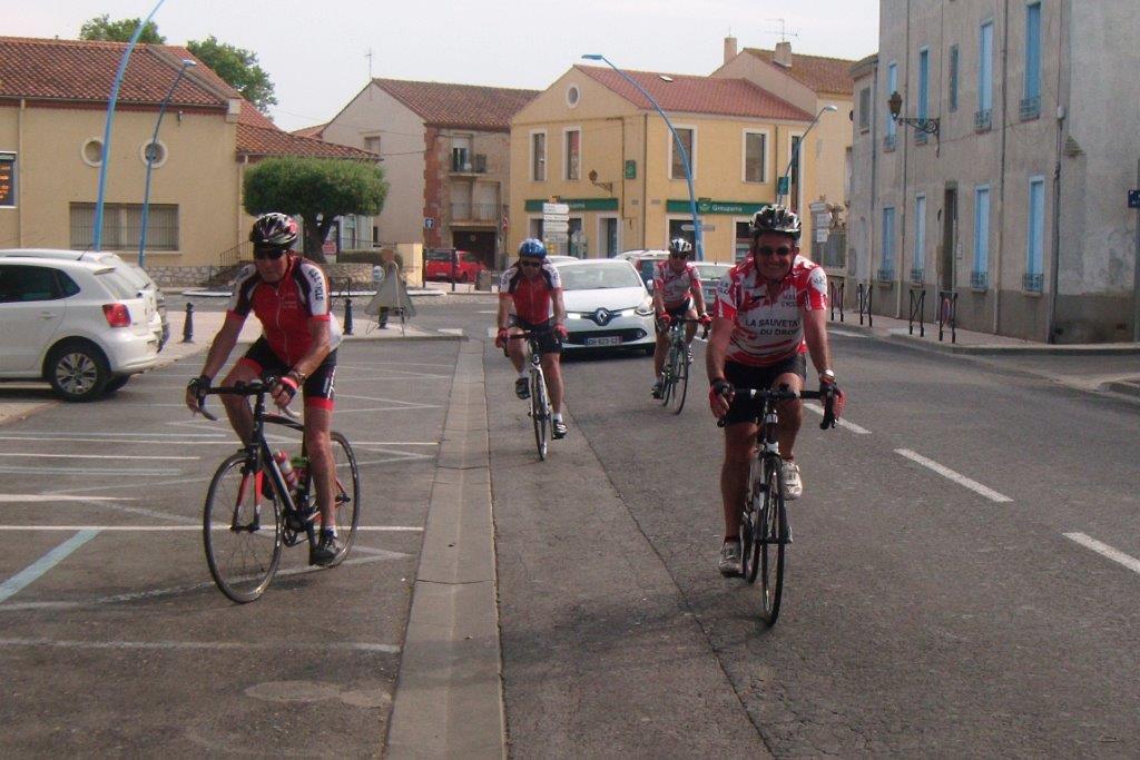 Demi étape réussie, le retour se fera par Tautavel, Vingrau, Opoul, toujours les contreforts, avec ses petites routes pentues et sinueuses. Le temps se couvre, l’orage menace, les premières gouttes ne tardent pas à nous rafraîchir. En œil averti, Hervé nous assure que le « gros » n’est pas pour nous!