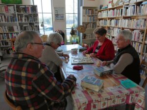 Elle est ouverte 2 mercredis par mois. Vous serez accueillis par Martine ou Jacote. En plus d’un grand choix de livres, il est possible de vous joindre aux joueurs de scrabble qui s’installent les jours d’ouverture.