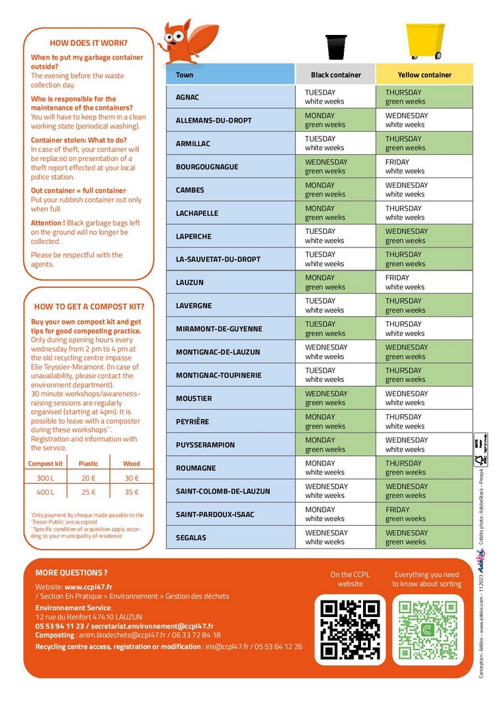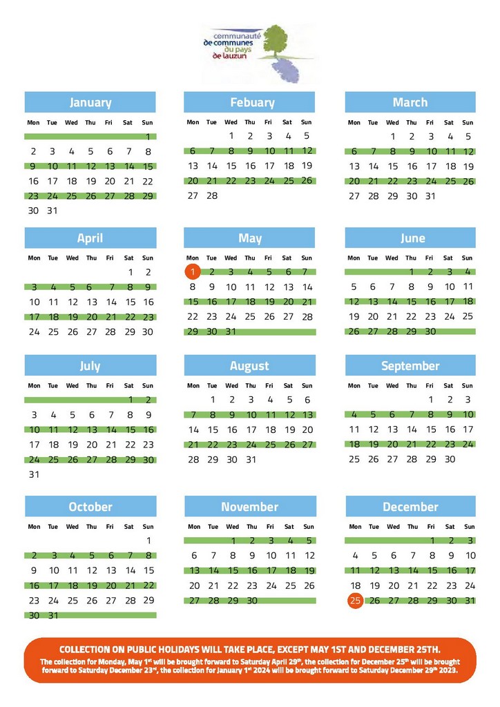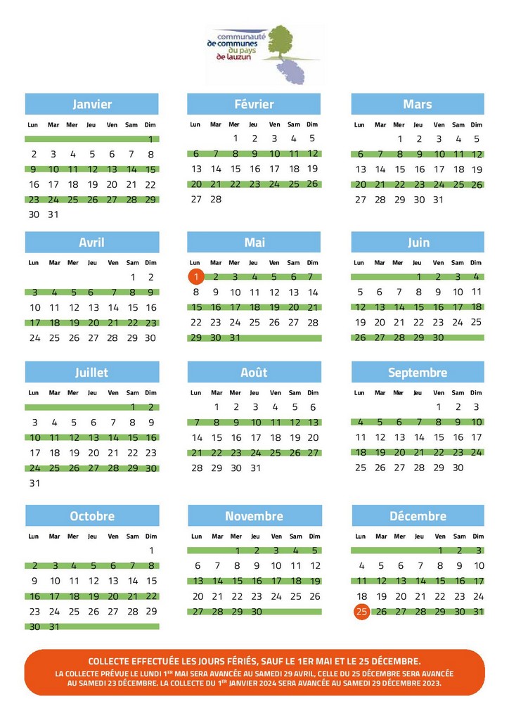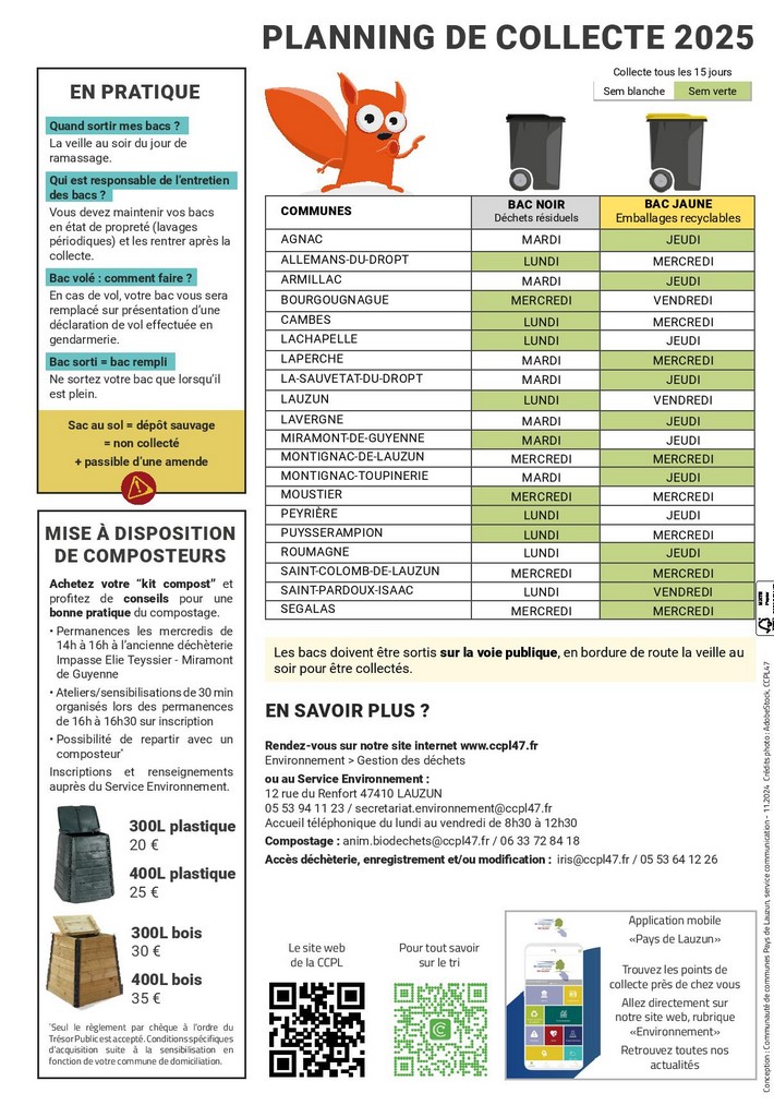 A télécharger, le Calendrier de Collecte 2025 – CCPL 47