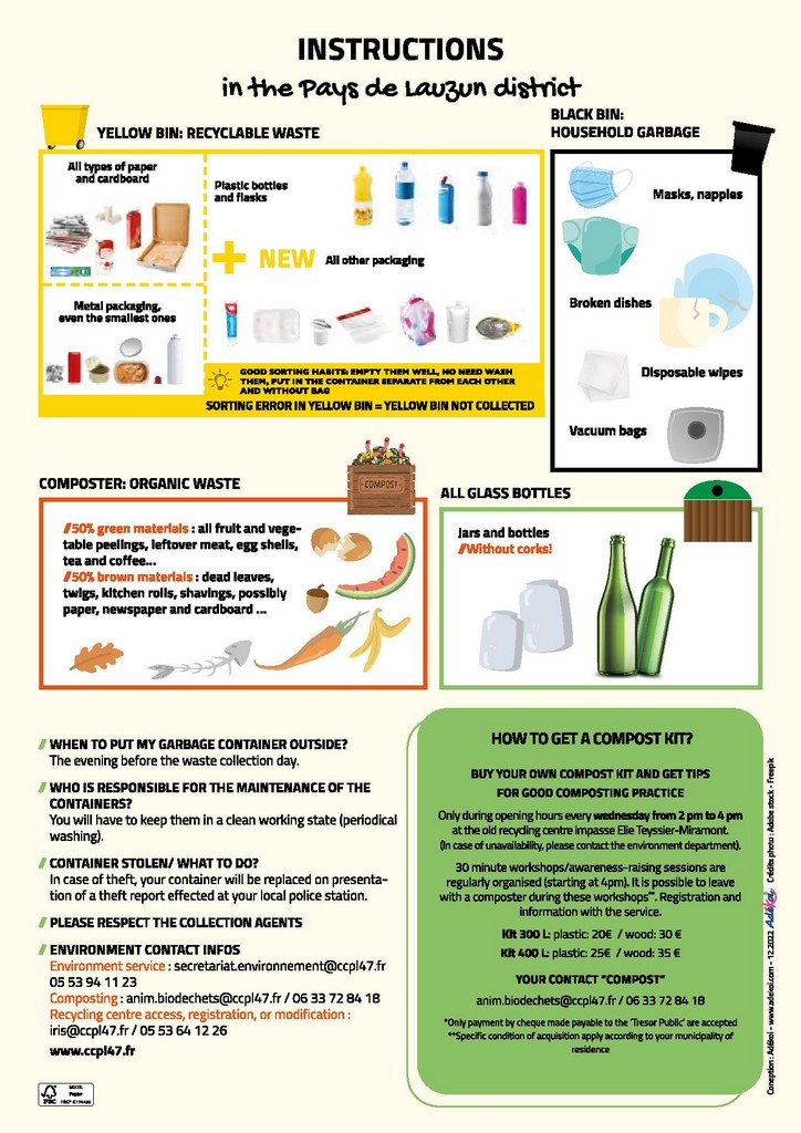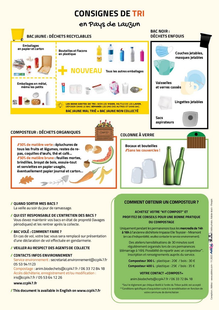 Depuis 2009, le Pays de Lauzun s’est résolument engagé dans le tri des biodéchets avec :
