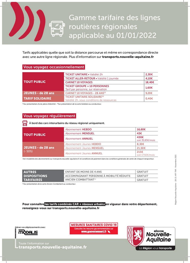 Munis de leur carte d’abonnement aux transports scolaires régionaux, les usagers scolaires peuvent accéder gratuitement au réseau des lignes régionales les mercredi, week-end et petites vacances scolaires (sauf vacances d’été).
