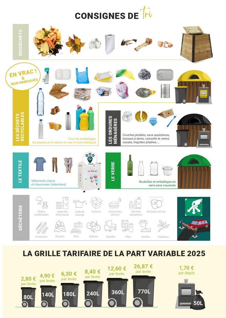 Le tri des déchets ménagers, une nécessité ! Moins ils pèsent dans vos bacs et sacs noirs, moins ils pèsent sur vos impôts et sur l’environnement. Chacun accomplit l’effort nécessaire, continuons sur cette lancée…