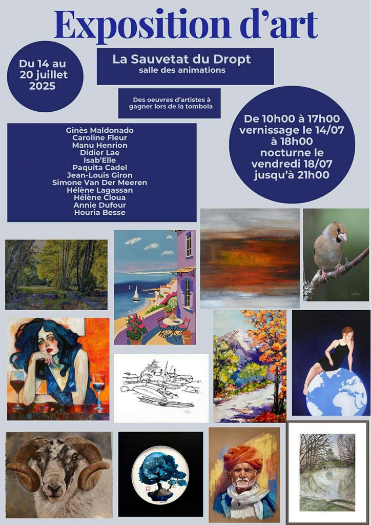 L’association est très active. Vous pourrez découvrir une exposition d’art dans la salle des animations de La Sauvetat du Dropt du 14 au 20 juillet. Il est possible de prendre des cours de musique, chant ou instrument, avec Thomas, dans la bibliothèque, chaque samedi de 10h à 12h (excepté ce samedi 28 juin) ou de chanter pour le plaisir avec Rinus un dimanche matin par mois dans l’église St Germain. Prochain rdv le 6 juillet.