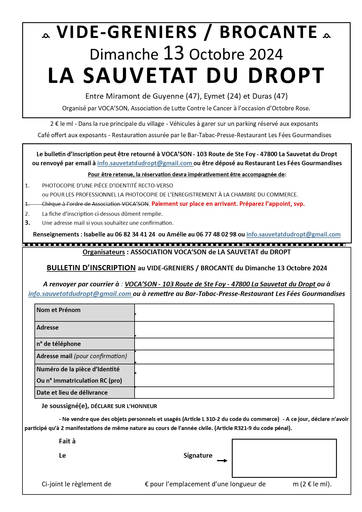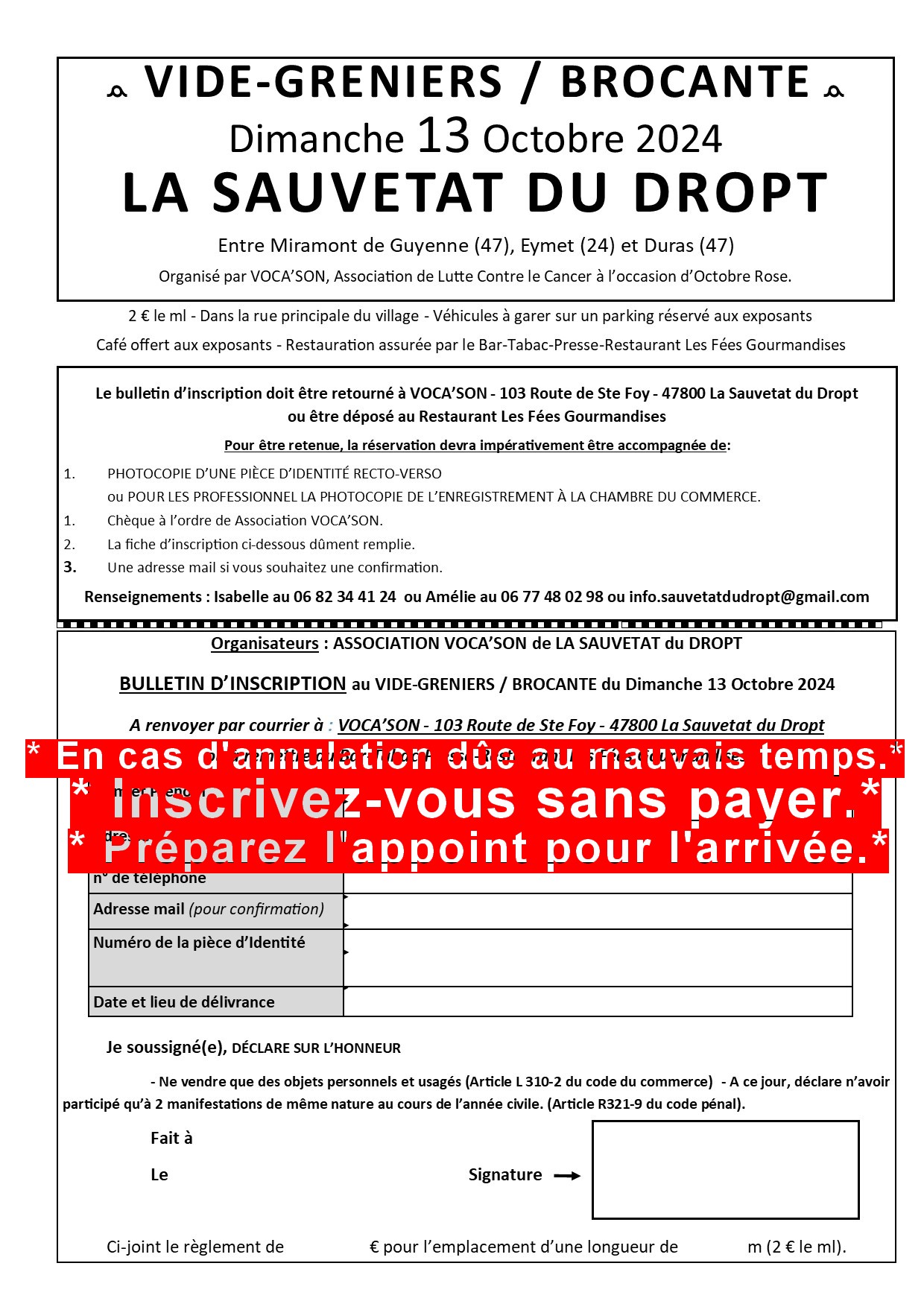 Cette année, VOCA’SON innove avec l’installation d’un Vide-Greniers – Brocante dans l’Avenue de Grammont.