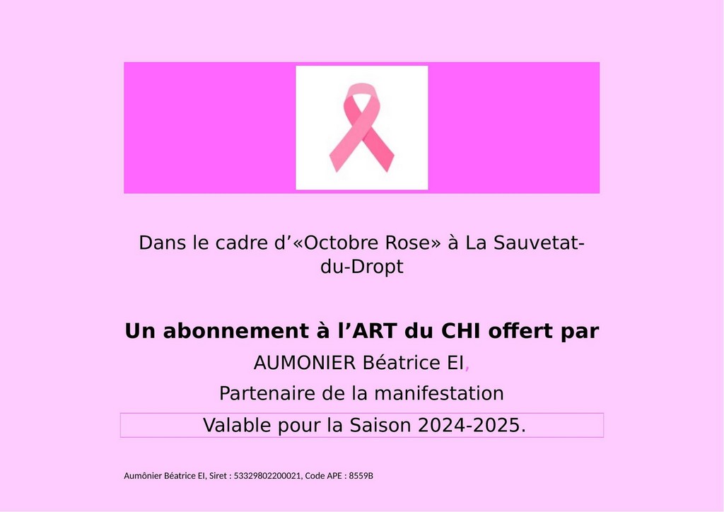 Vous savez déjà, comme les années précédentes, que le bénéfice réalisé lors de ce weekend sera intégralement reversé en faveur de la lutte contre le cancer du sein.