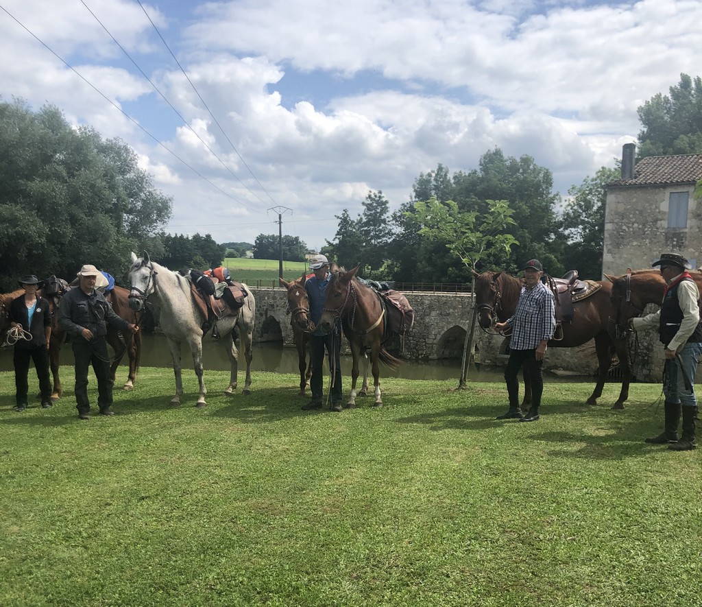 Parmi eux, le président du CDTE Salvador Merida. Ce circuit qui sillonne le Lot-et-Garonne n’avait pas été resuivi depuis 20 ans ! Partis depuis Cancon sur leur destrier, la balade les a conduit à La Sauvetat en passant par Castillonnès, Lauzun où les a rejoint Jean-Louis Desmots de Lavergne, Bourgougnague, St Pardoux, La Sauvetat et enfin Soumensac où ils passaient la nuit au camping à la ferme des Écuries du Nebout. Le parcours s’est poursuivi le lendemain jusqu’au sud de Loubès-Bernac avant de revenir sur Monteton puis Seyches et Labretonie pour un arrêt au Ranch du Bel Air.
