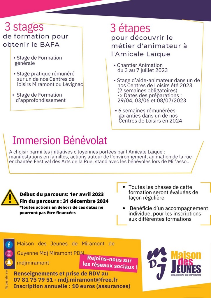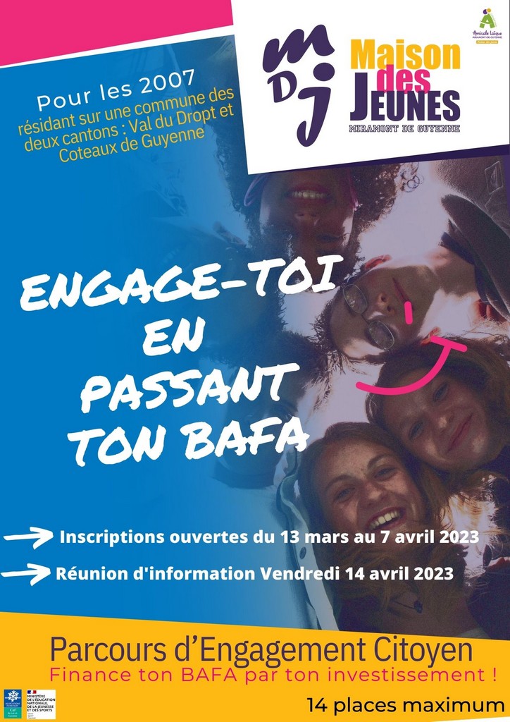 Passer le BAFA à 16 ans, toutes les étapes pour s’inscrire en formation. Information de la Maison des Jeunes de Miramont de Guyenne
