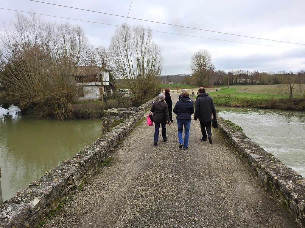 La visite débutait par un rapide tour du village pour que le couple découvre le patrimoine sauvetatois. Les vestiges de notre passé historique ne sont pas les seuls pouvant intéresser l’œil aiguisé d’artistes. Le détail d’une pierre, la couleur défraîchie d’une porte, la perspective d’une rue ou l’évocation d’un événement passé peuvent éveiller la curiosité et mettre en mouvement pinceaux d’aquarellistes ou autres crayons pastels.