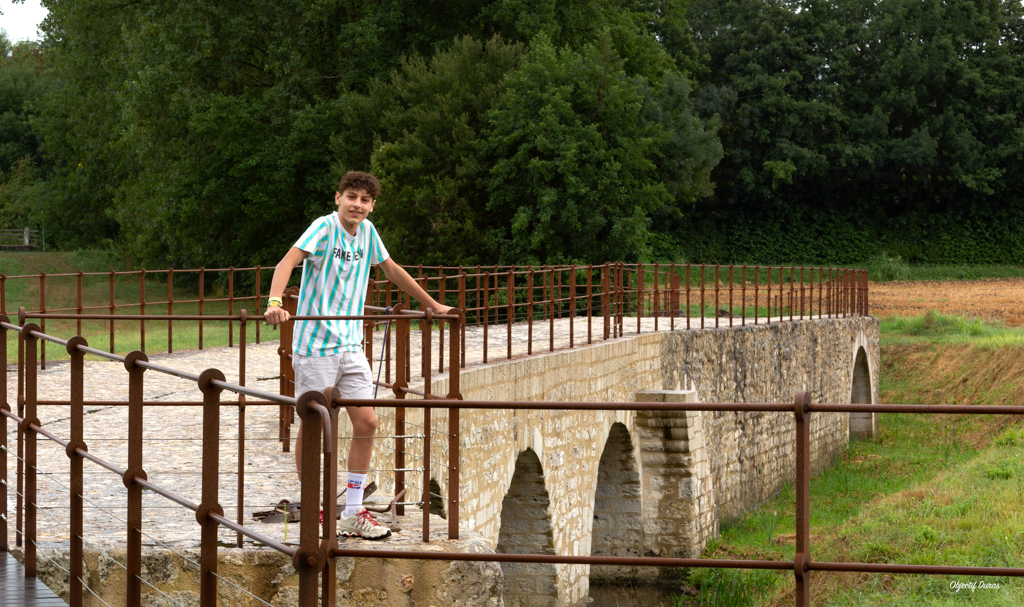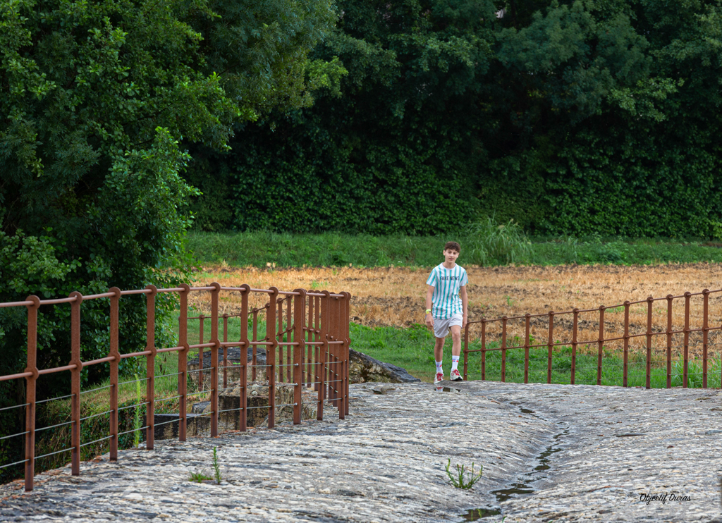 Le Pont Roman situé sur la commune de La Sauvetat du Dropt mais propriété pour moitié de la commune d’Agnac est souvent investi pour des séances photos. C’est le cas ici avec Michel Michelot, ancien président et toujours membre incontournable du club Objectif Duras, venu avec son petit fils Alban qui s’est volontiers prêté au jeu. Au cours du shooting, Michel et Alban ont croisé des résidents permanents du lieu …