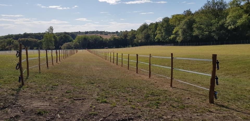 Une carrière en sable de 50 x 27 fermée et hersée régulièrement avec parc d’obstacles et une carrière sur herbe pour enchaîner des parcours de cso + quelques obstacles de cross.