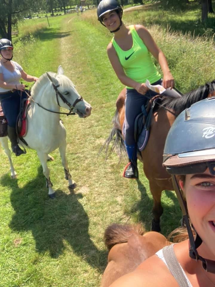 • Enseignement, du débutant au confirmé, 2 chevaux à disposition pour les leçons ;