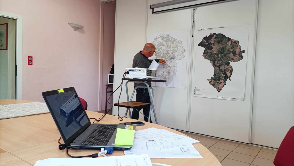 Jeudi 4 avril, Monsieur le Maire Jean-Luc Gardeau et ses adjoints se retrouvaient autour de la carte communale afin d’avancer sur le projet du Plan Local d’Urbanisme (PLU) avant finalisation avec Joseph Badiane du cabinet URBADOC.