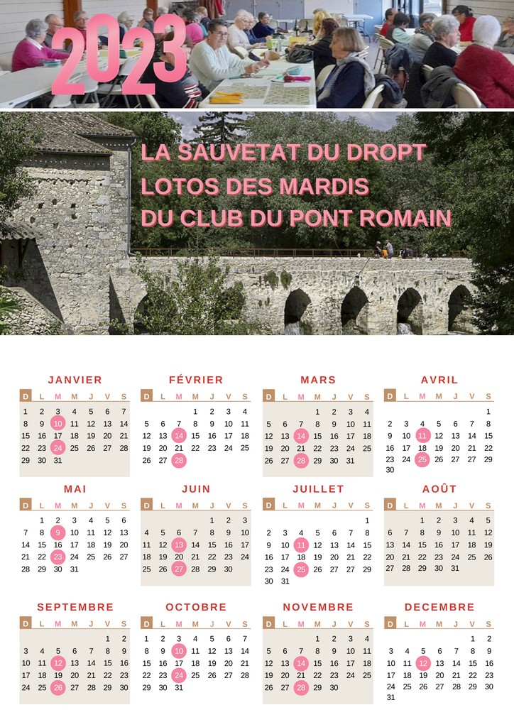 Calendrier à télécharger MARDIS LOTOS CLUB PONT ROMAIN