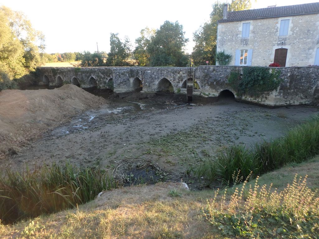L’eau est déviée vers l’ancienne écluse et actuellement le Dropt en amont du pont face au moulin est à sec. En début de semaine, la société de pêche de l’Espoir Piscicole DEMS viendra retirer les poissons emprisonnés entre le batardeau et le pont.