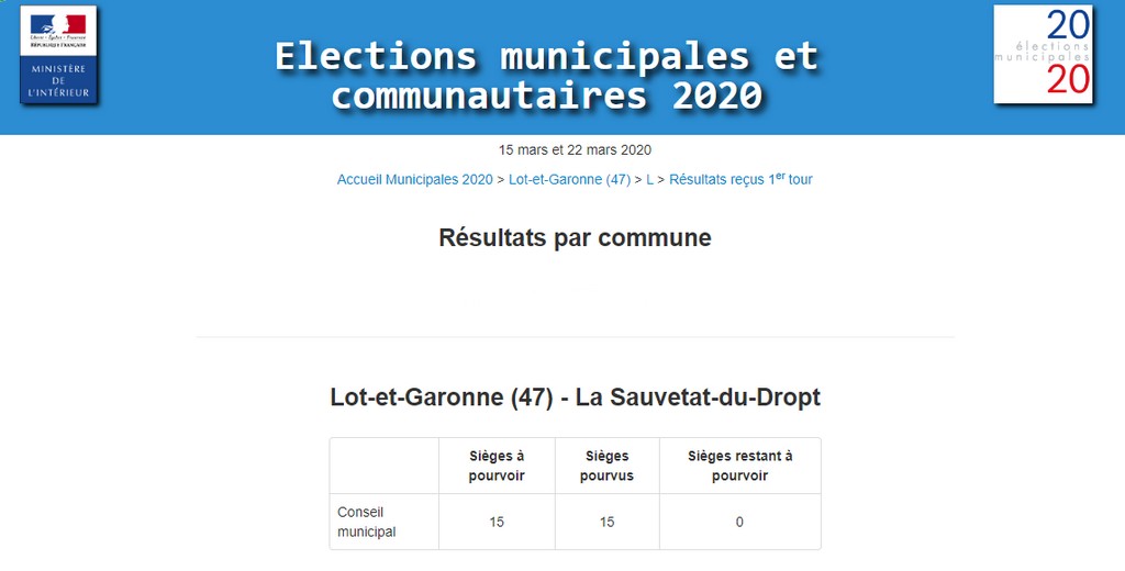 La Sauvetat-du-Dropt : quels sont les scores du 1er tour des élections municipales 2020 ?