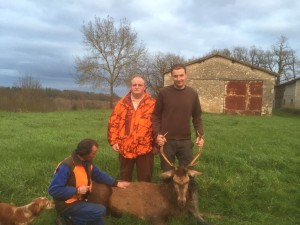 Chasse nette pour ce morceau de choix inespéré. Rêve exaucé pour notre jeune président du Chasseur Sauvetatois chaleureusement félicité. Il vient, respectueusement, de faire chuter un mâle de 135 kg et âgé de 5 ans, c’est inscrit sur ses bois.