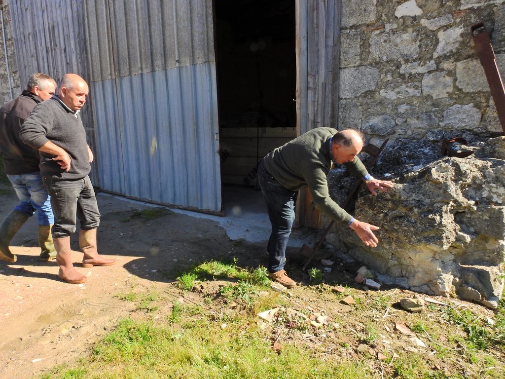 Roger a cependant très gentiment ouvert sa porte pour raconter les installations anciennes qu’il se souvient avoir vu et nous montrer des éléments actuellement dispersés dans et autour du bâtiment. Il a situé l’emplacement des roues motrices et des pelles et expliqué la particularité de ce moulin qui possède deux canaux d’amenée et trois canaux de fuite. En effet, un des canaux d’amenée se partage en deux canaux sous le moulin. Nous avons aussi pu observer la meule faite de silex aujourd’hui remisée dans le jardin potager.
