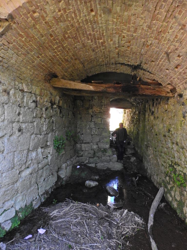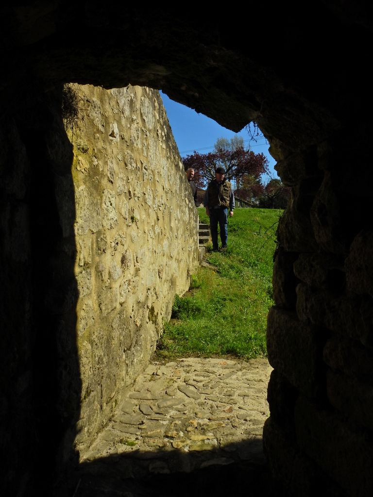 Côté ouest, en entrant dans cette scierie depuis longtemps motorisée, nous avons découvert ou plutôt réalisé que le morceau de mur visible au pied du bâtiment était en fait un pan de l’ancien mur d’enceinte. On y voit très nettement un départ de voûte. Observation confirmée par Roger qui se rappelle très bien avoir emprunté ce passage voûté et étroit. Un escalier descendait au pied du mur. Pour faciliter l’aire de circulation de l’entreprise, cette partie extérieure a été jadis remblayée sur trois mètres de hauteur.