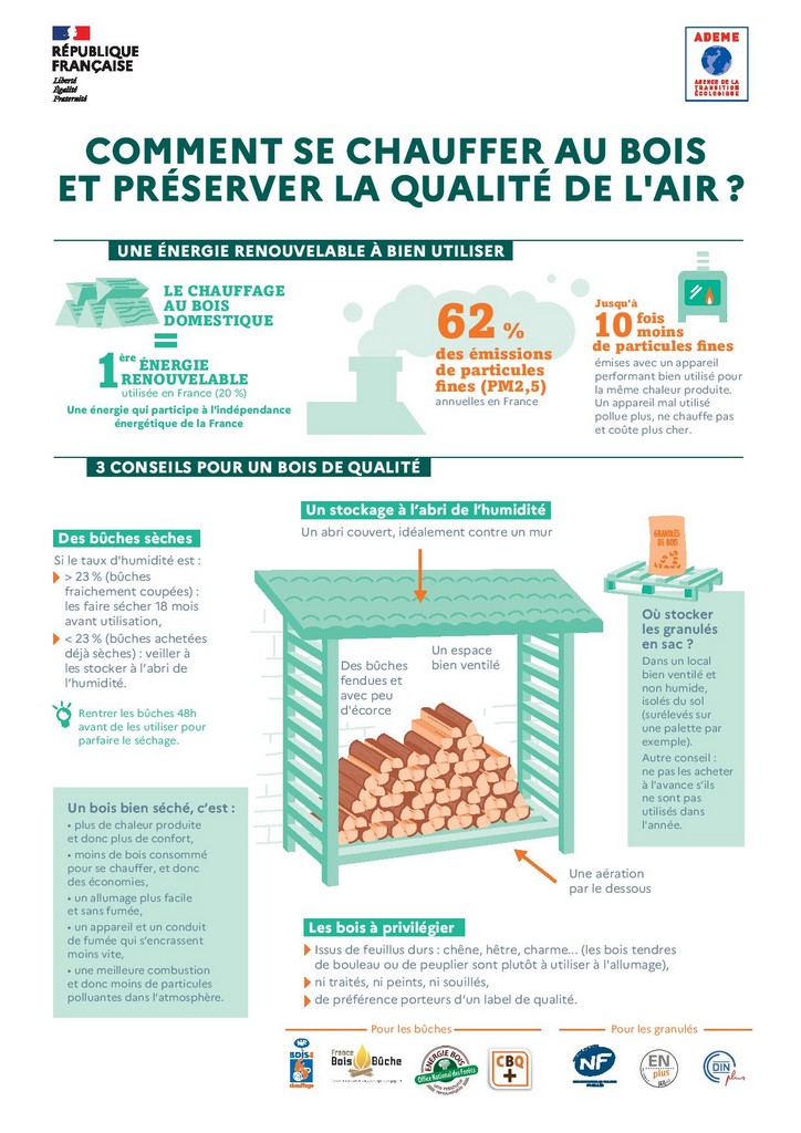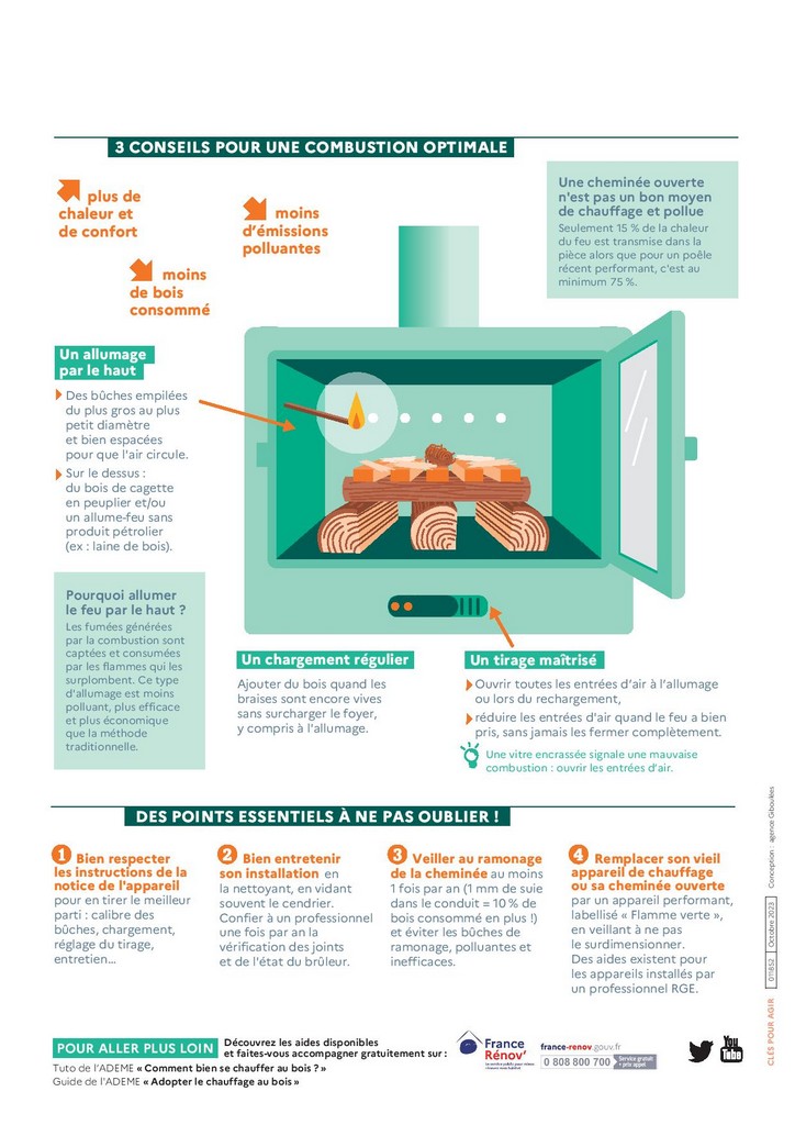 Le froid et l’humidité s’installent doucement dans nos régions. Pour le chauffage au bois, il y a des mesures simples à prendre pour optimiser son fonctionnement. L’ADEME vous présente ses fiches conseils :