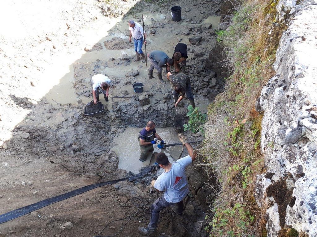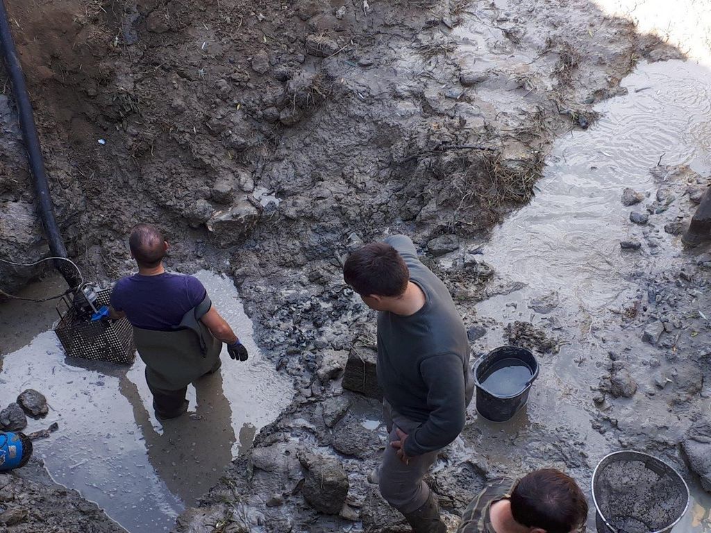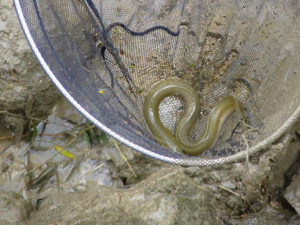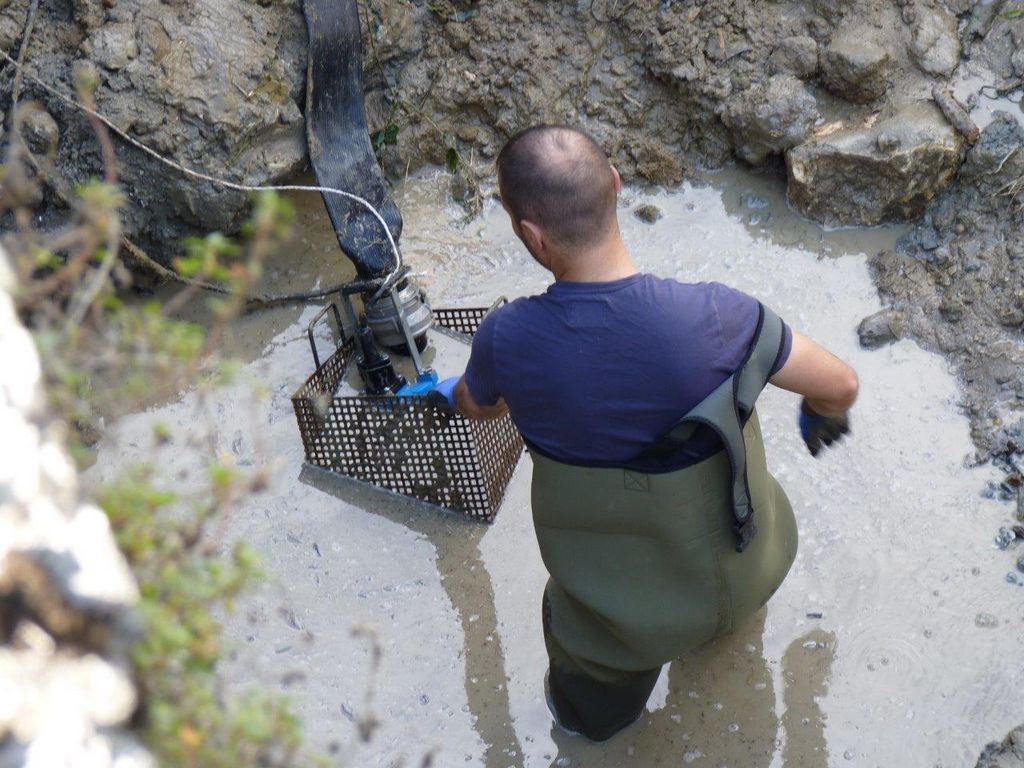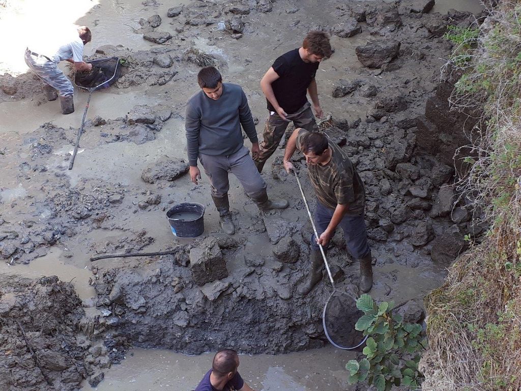 Il fallut dans un premier temps installer des pompes utilisées pour envoyer l’eau de l’autre côté du pont. Opération un peu longue en raison d’un amorçage difficile. Puis, à l’aide d’épuisettes, sortir les poissons prisonniers. La pêche ne fut pas miraculeuse mais permit de remettre à l’eau quelques écrevisses, deux poissons d’une dizaine de centimètres, plusieurs de moins de 2 cm, une belle anguille et trois plus petites.