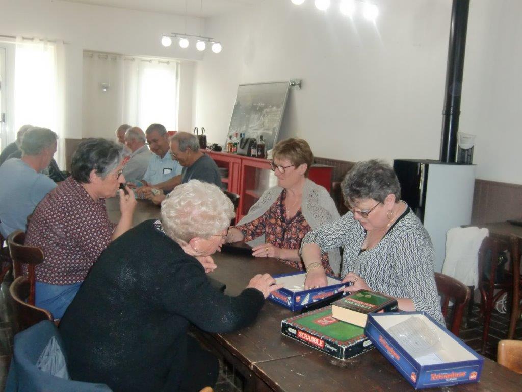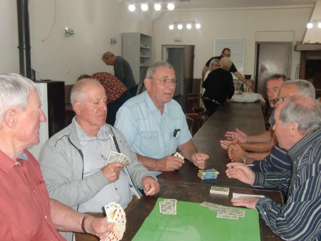 La salle nous étant réservée pour l’après-midi, nous ne pouvions moins faire que nous distraire avec une bonne belote autant acharnée que bruyante pendant que les dames se confrontaient autour du triomino.
