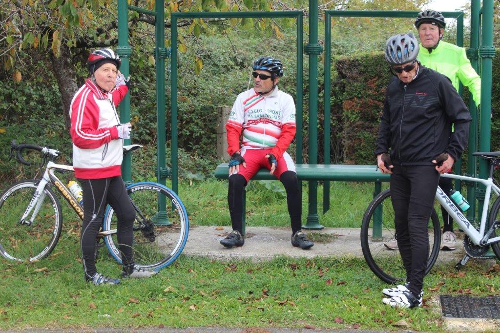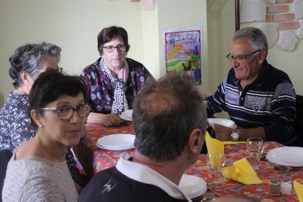 Nous voici réunis devant la Maison des Loisirs à La Sauvetat du Dropt, prêts à découvrir le parcours aller, soigneusement étudié par Alain, pour nous rendre à St Méard de Gurçon. Pas d’exceptionnelles surprises sur ces trajets environnants une fois le village quitté, nous les empruntons régulièrement au cours de nos entraînements hebdomadaires. Par contre, véritable régal de se retrouver entourés par les anciens qui n’avaient pas hésité à nous rejoindre avec compagnes et amis pour un succulent repas servi à midi à « L’Auberge de Jolibois ».