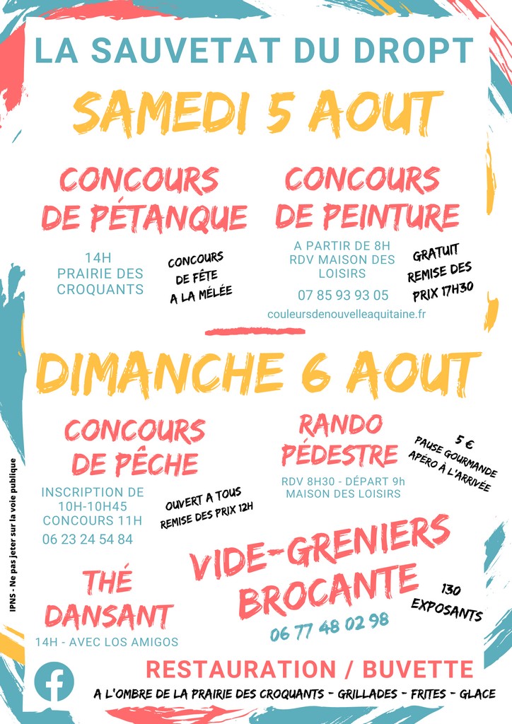 Le prochain rendez-vous sera celui de la Fête Votive où les Amis de la Sauveté vous proposent une randonnée le dimanche matin. Elle traversera les stands du vide-greniers / brocante depuis La Prairie des Croquants jusqu’à la Place du Prieuré avant de sortir du village pour se retrouver dans notre belle campagne. Notez la date dans vos agendas, le dimanche 3 août.