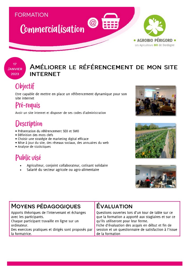 → Formation des créateurs d’entreprise pour mettre en place leurs outils de communication internet professionnels.