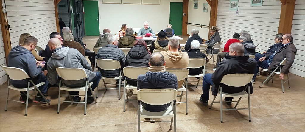 Résumé du vice-président, Alain le Marseillais; Photos de l’AG, Monsieur le Maire; Photo des chasseurs, Jean-Marc Reclus.