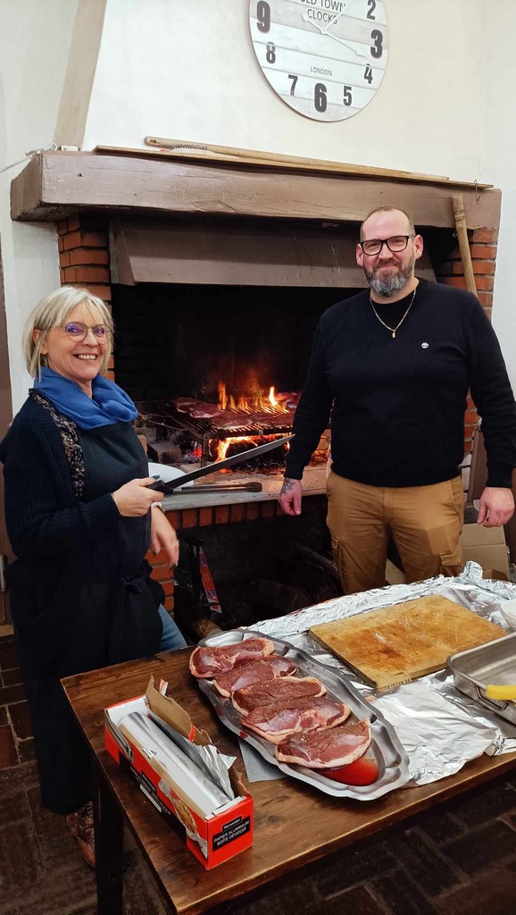 Pour l’occasion, Maureen et Marie œuvraient devant le fourneau tandis que Nicolas désertait son espace bar pour se mettre au chaud, dans la salle de réception, devant un grand feu de cheminée pour y faire griller des magrets.