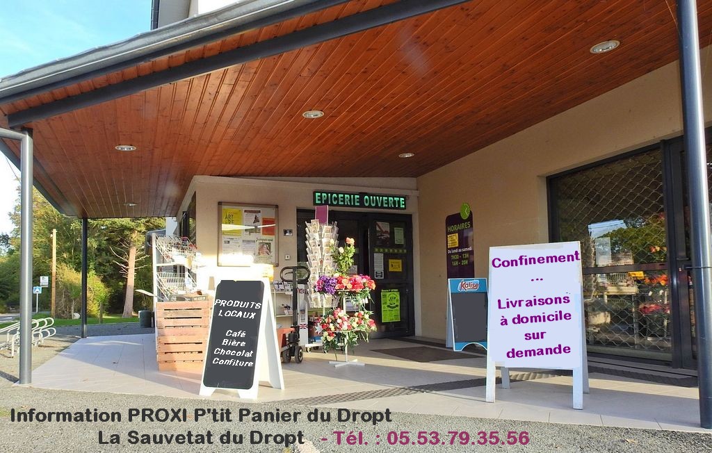 Le PROXI P’tit Panier du Dropt s’adapte en proposant des livraisons à domicile après avoir commandé par téléphone ou par mail à christinepenicaud@orange.fr. N’hésitez pas à vous renseigner auprès de Christine ou Lydie au 05 53 79 35 56.
