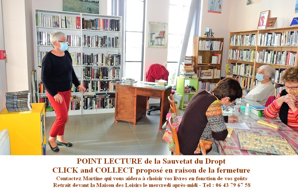 Le Point lecture du village, par l’intermédiaire de Martine, propose un click and collect. Voir sur la carte ci-dessus les modalités et coordonnées.