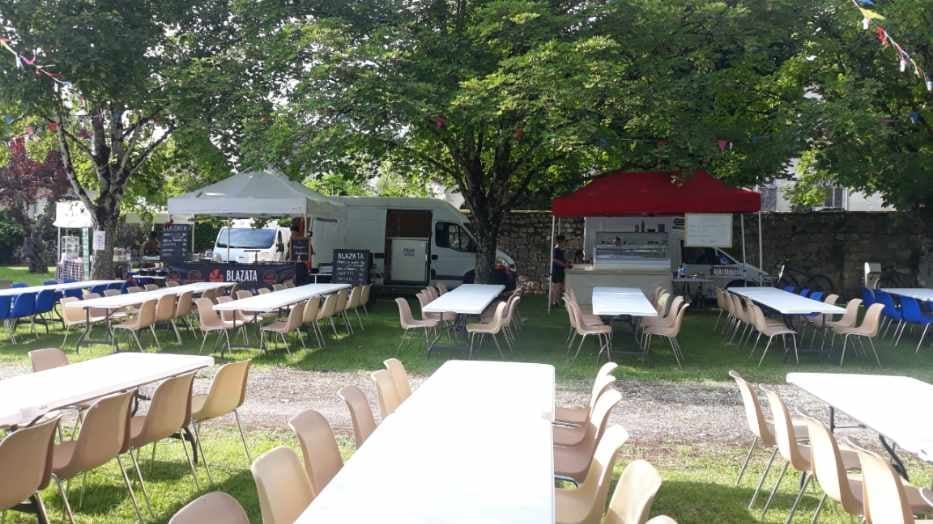 Une dizaine de stands de bouche sont installés pour vous permettre de concocter votre menu au gré de vos envies. Vous le dégusterez sur une des tables mises à votre disposition par le Comité des Fêtes qui fait appel à tous les bénévoles du village pour que l’accueil soit parfait. Le tout dans l’espace champêtre de la Prairie des Croquants à l’arrière de l’église.