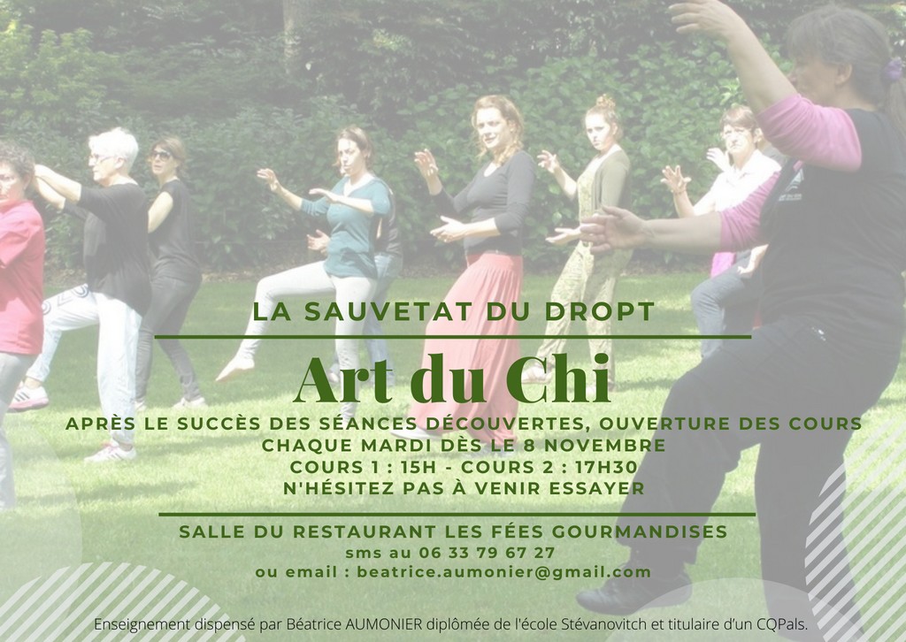 Après le succès des 2 ateliers découvertes de l’ART DU CHI, deux cours ouvrent le mardi après-midi dès le 8 novembre. A 15 h et à 17h30, dans la salle du restaurant les Fées Gourmandises.