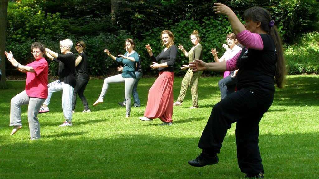 Tout le travail développé au sol est ensuite appliqué et mis au service de mouvements en posture debout : Qi Gong à travers les 11 exercices de santé et Tai chi Chuan à travers les 24 postures (Petite forme de Pékin) pour les débutants.