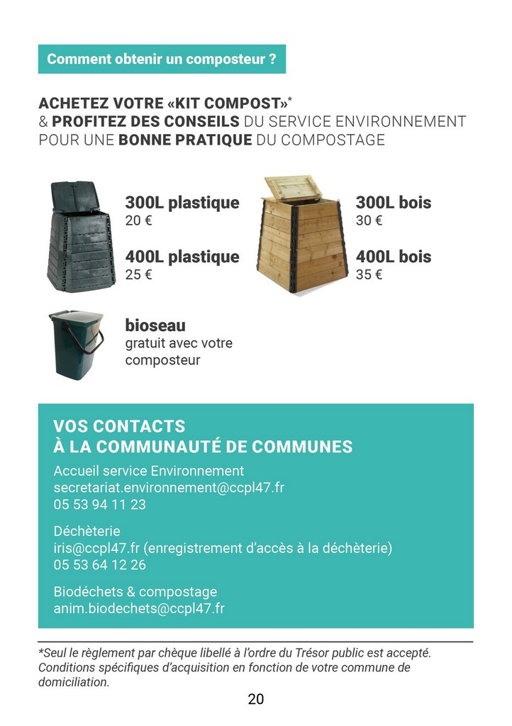 Plastique ou bois. Renseignez-vous auprès de Jérémy Brière, agent chargé de mission biodéchets au service environnement de la CCPL 47 – 06 33 72 84 18