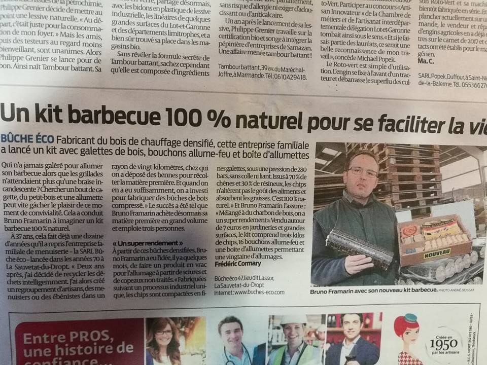 « Buche-eco 47 est une entreprise spécialisée dans la fabrication de bûche de bois densifié ou compressé : bûche de jour. Mais aussi dans la vente de bûche de nuit ; chips allume feu, bois pour barbecue ; et granulés bois.