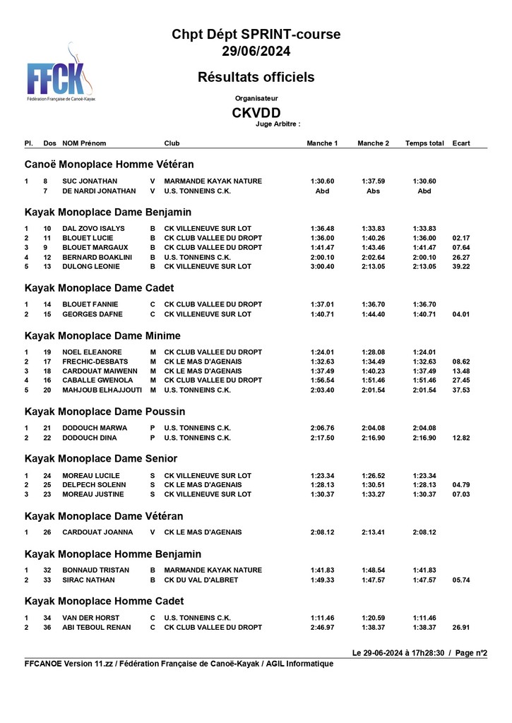 Une information de Stéphanie Noël glanée sur la page Fb Canoë Kayak Club Vallée du Dropt.