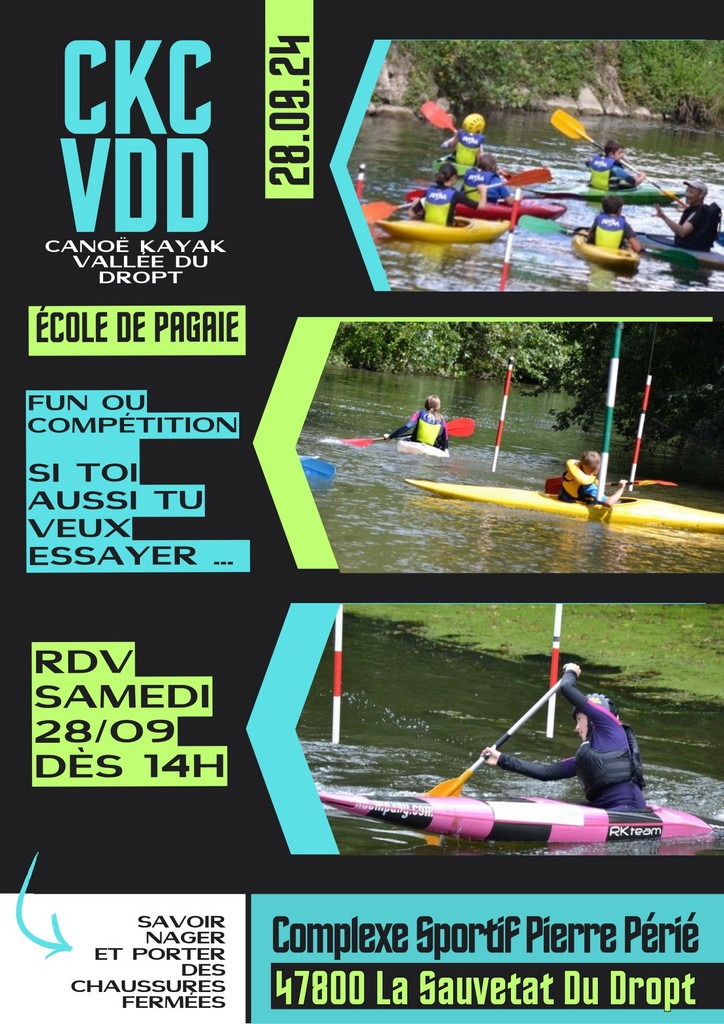 Information à retrouver sur la page Facebook du CKC VDD.Le samedi 21 juin, le Championnat Départemental du Lot-et-Garonne de Descente Sprint se tiendra à La-Sauvetat-du-Dropt ! Départ de la course à 13h30.