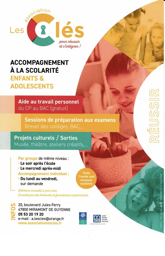 Cette action est soutenue financièrement par la CAF et la MSA dans le cadre du Contrat Local d’Accompagnement à la scolarité (CLAS).
