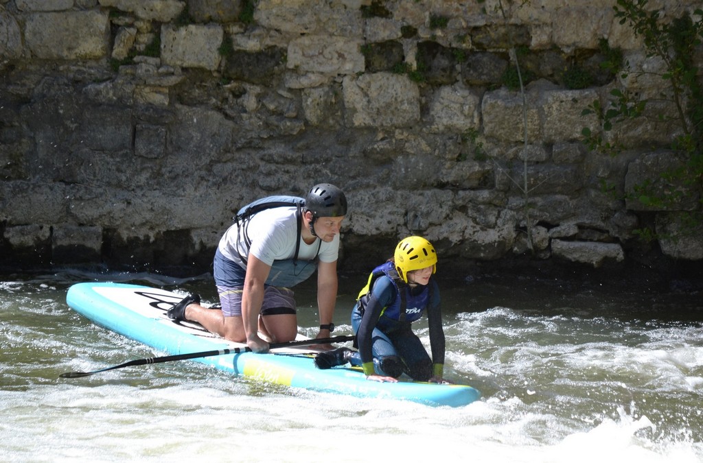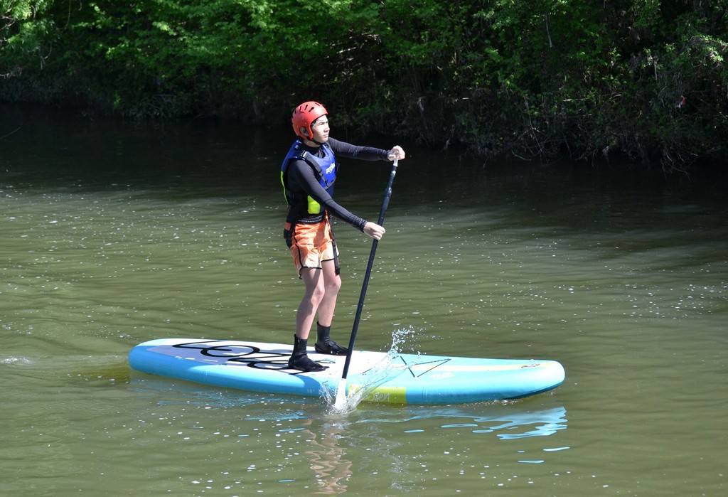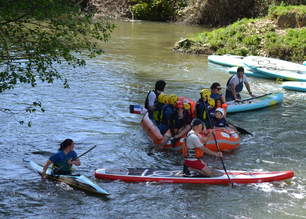 Après une heure d’entraînement dédiée à la préparation du Championnat Départemental de Descente Sprint du samedi 27 avril, raft et paddles ont rejoint les kayaks pour profiter du courant aux abords du Pont Roman de La Sauvetat du Dropt/Agnac.