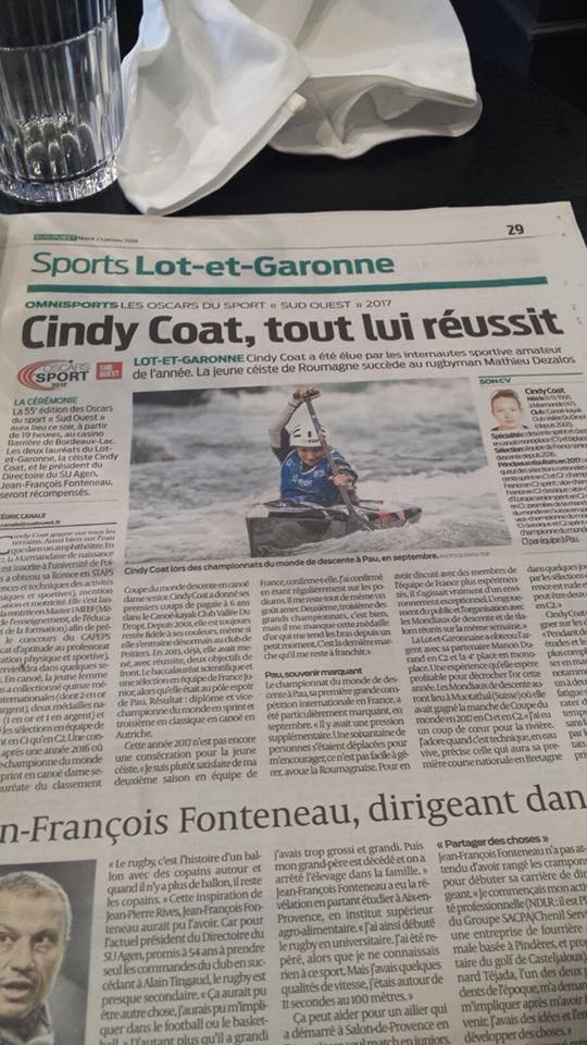 Cindy COAT, jeune kayakiste du club de la Vallée Du Dropt a réintégré l’équipe de France Senior et – 23 ans pour l’année 2017.
