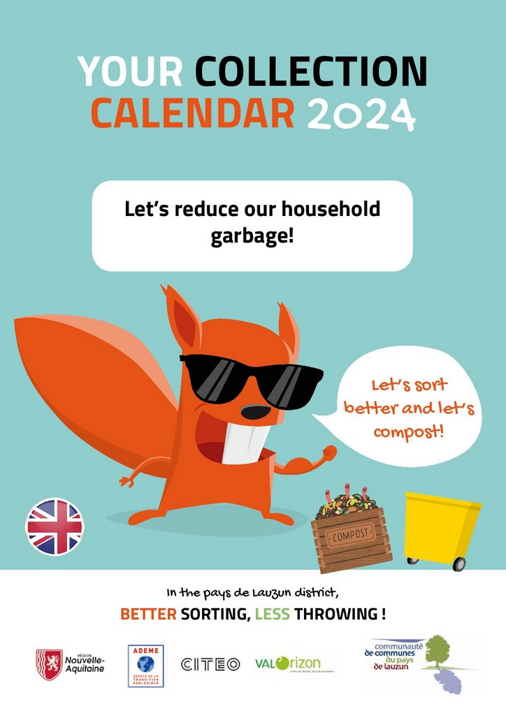 For the English speaking community, the Pays de Lauzun district’s Collection Calendar 2024 is now online.
