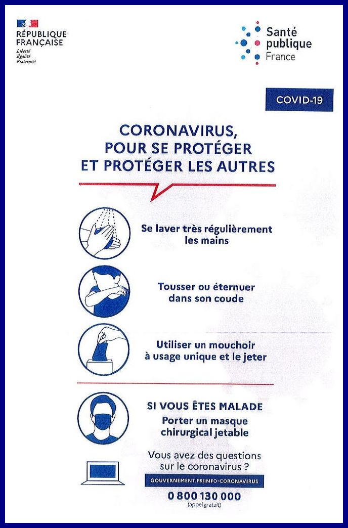 En raison d’un grand nombre d’anglophones sur la commune, le Maire et les adjoints décidaient de faire faire une traduction des mesures primordiales de cette urgence sanitaire exceptionnelle. Cette traduction sera faîtes par Christine, sœur du Maire, qui est bilingue. Elle sera distribuée via les mails connus des résidents étrangers avec demande de partage au plus grand nombre.