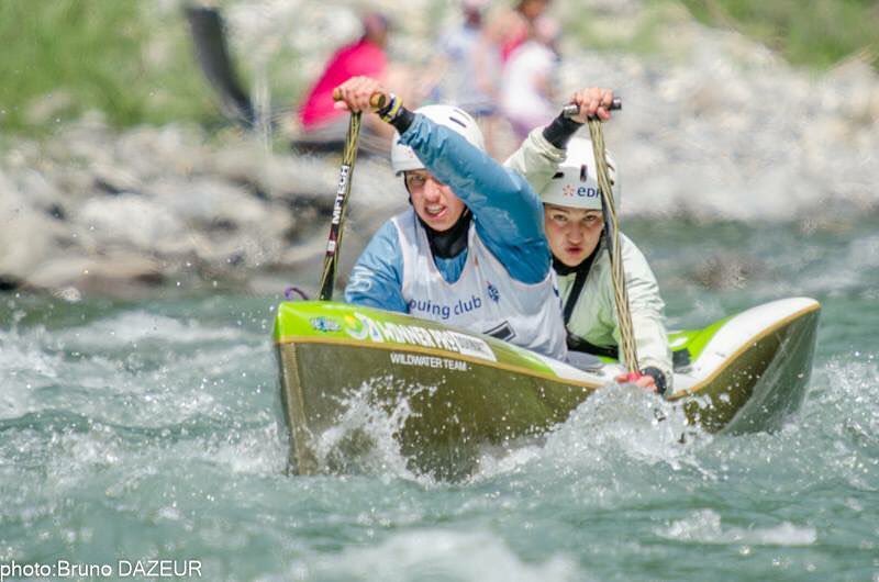 En sprint, Cindy et Manon gagnent en C2, sur un parcours très technique suite à un gros niveau d’eau!
