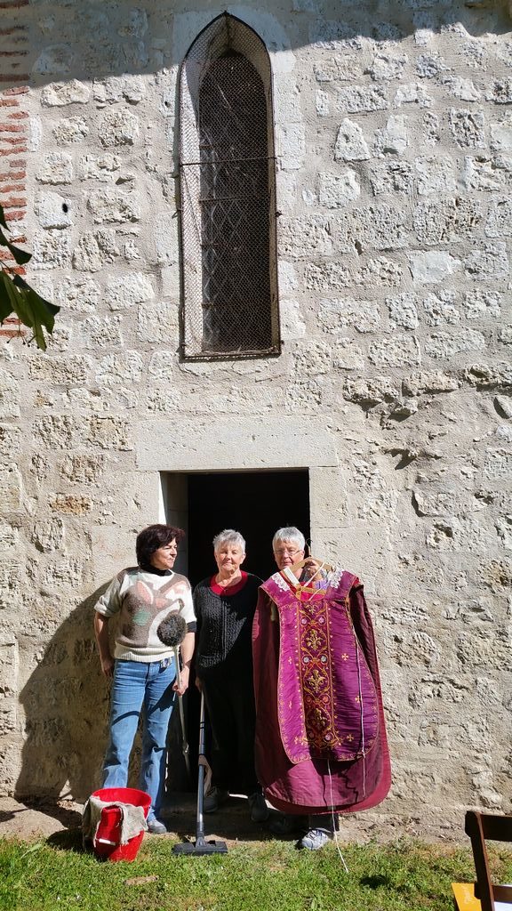 « Sous la houlette de St Germain, nous étions 6 bénévoles à entreprendre le nettoyage de printemps de notre église. Bâtiment important qui a nécessité beaucoup d’huile de coude et provoqué des maux de dos. Mais le travail ne nous faisant pas fuir, la fin de journée venue, l’église sentait bon l’encaustique, les chaises rangées prêtes à recevoir du monde en prévision de la confirmation de quelques jeunes des paroisses de Miramont et Duras le 11 juin en présence de l’Évêque du Diocèse d’Agen, Monseigneur Herbreteau, ainsi que d’un concert le 17 du même mois. »