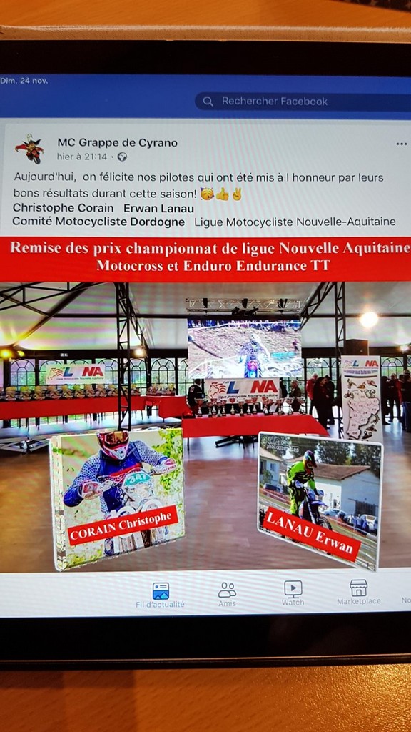 Christophe Corain vient d’être récompensé pour ses bons résultats en tant que motocycliste vétéran dans la catégorie Motocross et Enduro Endurance TT du Championnat de Ligue Nouvelle Aquitaine. Nous lui adressons toutes nos félicitations.